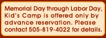 Kids Camp Weekly schedule will be available through August 15. August 17 - September 7th Kids Camp will be during the weekend only.